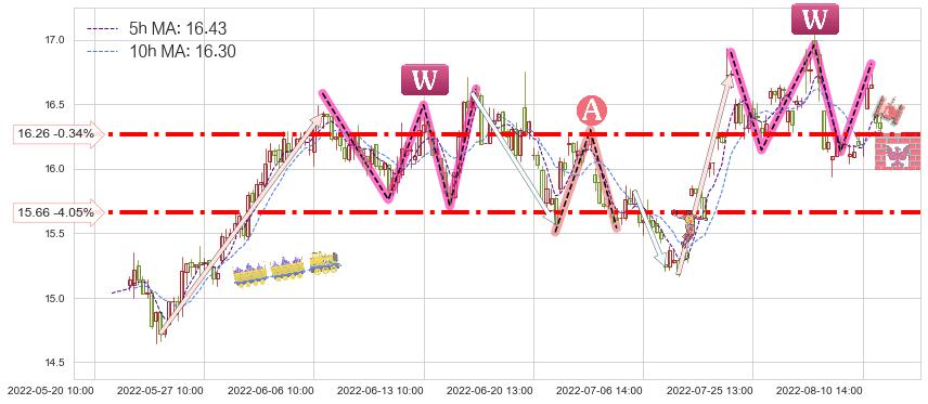 ♞ 5小时均线:16.43,10小时均线:16.30→ 快线>慢线
