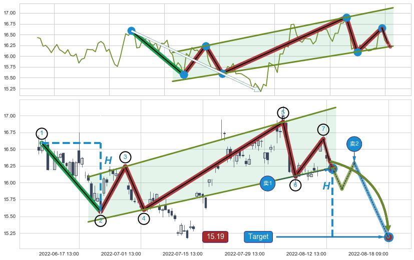 ➢ 【仅预测突破】最后价格:16.32与预测突破价格:16.21→【空间临近】后续最小【整理】第一目标价格→(08-18:09: 15.19 )