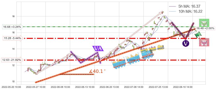 ♘ 阻力价格位16.68,可信任强度49.01%,距离最后交易2022-08-12 14:00形成的收盘价格16.16相差 +3.24%