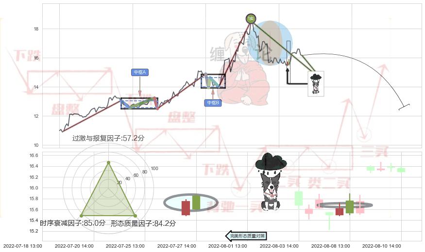 ➢ 🕰 价格走势在2022-08-10 13:00:00至2022-08-12 13:00:00期间形成高档五阴线,残存影响值:-6.12