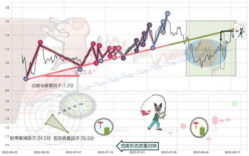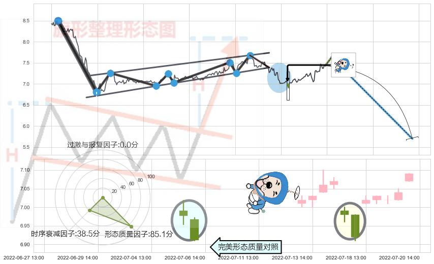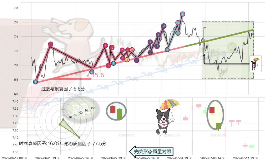 ➢ 2022-04-27 09:00-2022-06-20 14:00上升趋势存在反转[风险],虽然原上升趋势的支撑位(7.49)已破位,但其支撑效果尚存,原上升趋势角度: 35.6˚