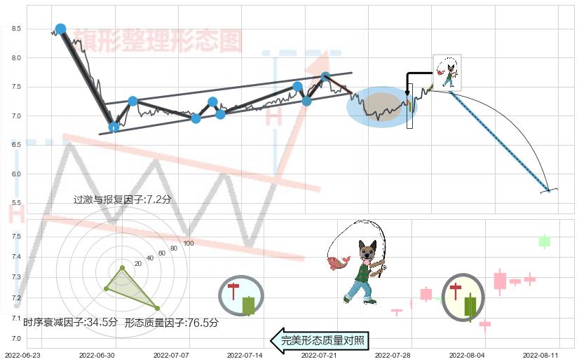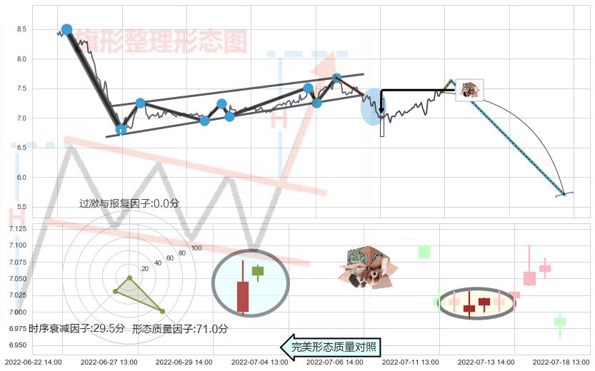 ➢ 下跌螺旋桨 🔜 升旗形支撑破位转换阻力下跌 综合量化分数:49.51 【中性】