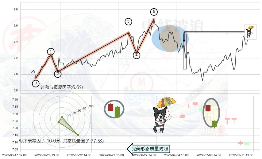 ➢ 🕰 价格走势在2022-07-11 14:00:00至2022-07-13 14:00:00期间形成低档五阳线,残存影响值:1.05
