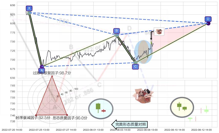 ➣ BC回撤位置在AB的87.4%,符合形态要求