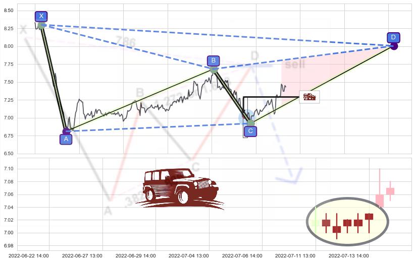 ➢ 谐波伽利:b下跌接近c:猜想支撑性拉升 → 上涨 →【拐点】支撑临近 → 大趋势均值回复