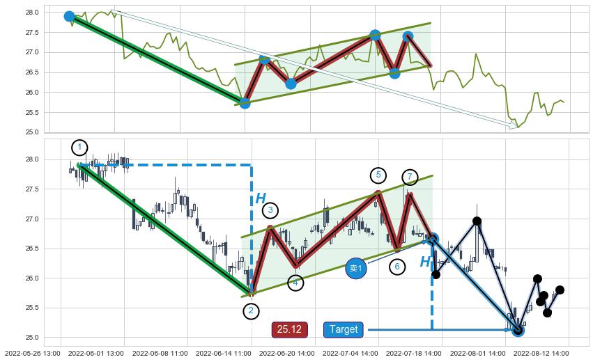 ➣ 最小中继整理跌幅→𝐇: 2.170 (𝐇旗杆的长度:旗杆起点→顶点)