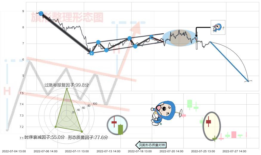 ➢ 🕰 价格走势在2022-07-22 14:00:00至2022-07-25 13:00:00期间形成下跌螺旋桨,残存影响值:-6.15