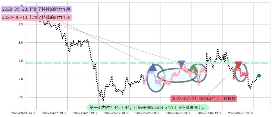 ♘ 阻力价格位7.74,可信任强度68.37%,距离最后交易2022-08-12 14:00形成的收盘价格7.09相差 +9.19%