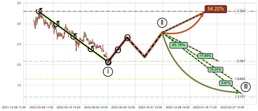 2022-02-28: 第一阻力位2.847有效抑制了下跌浪,成功阻止了价格的继续下跌。