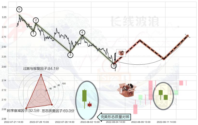 ➢ 🕰 价格走势在2022-08-10 13:00:00至2022-08-10 14:00:00期间形成底部尽头线(上山虎),残存影响值:6.84