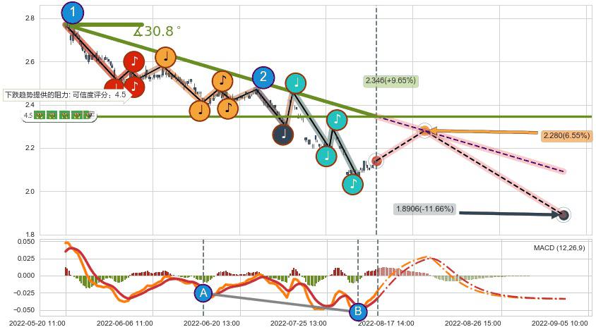 ➢ 预测:2022-08-18 14:00,【小幅反弹】稳定目前下跌趋势的前提下,预测价格:2.280