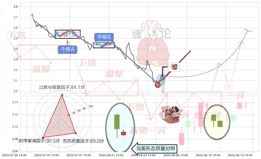 ➣ 缠论买卖点:下降缠中枢AB形成后猜想拐点1买已到达,猜想后续持续拉升(均值回复)