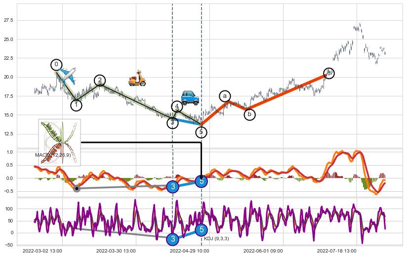 ➣ 波浪理论:猜想达到c点后小反弹终止反转下跌 → 下跌 → 【拐点】临近 → 阶段均值回复结束后继续大周期趋势跟踪