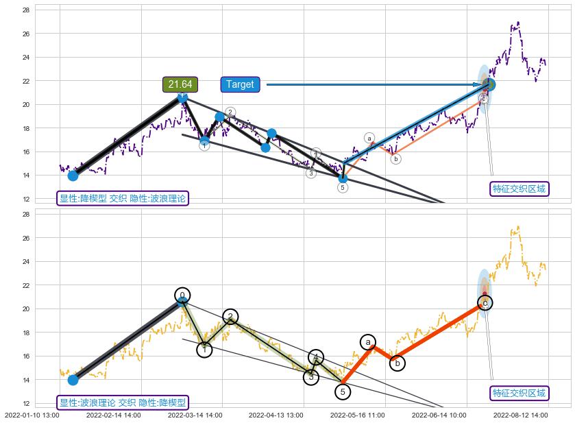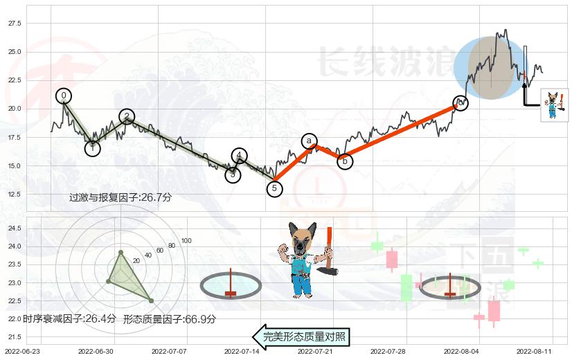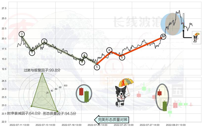 从2022-07-20 13:00至2022-08-12 14:00,共包含36个小时,阶段股价下跌-14.37%,阶段股价变动位移路程比: 1 : 3