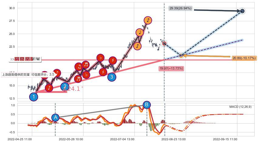 ♘ 支撑价格位17.06,可信任强度89.07%,距离最后交易2022-08-12 14:00形成的收盘价格23.15相差 -26.31%