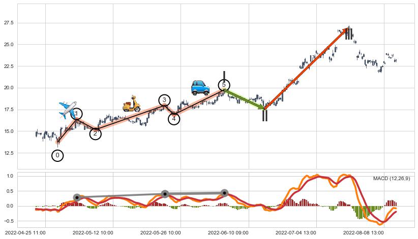 从2022-08-04 13:00至2022-08-12 14:00,共包含14个小时,阶段股价上涨5.76%,阶段股价变动位移路程比: 1 : 2