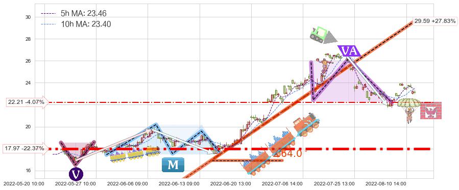 ♘ 支撑价格位22.21,可信任强度47.34%,距离最后交易2022-08-12 14:00形成的收盘价格23.15相差 -4.07%