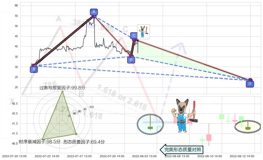 ➣ BC回撤位置在AB的41.9%,符合形态要求