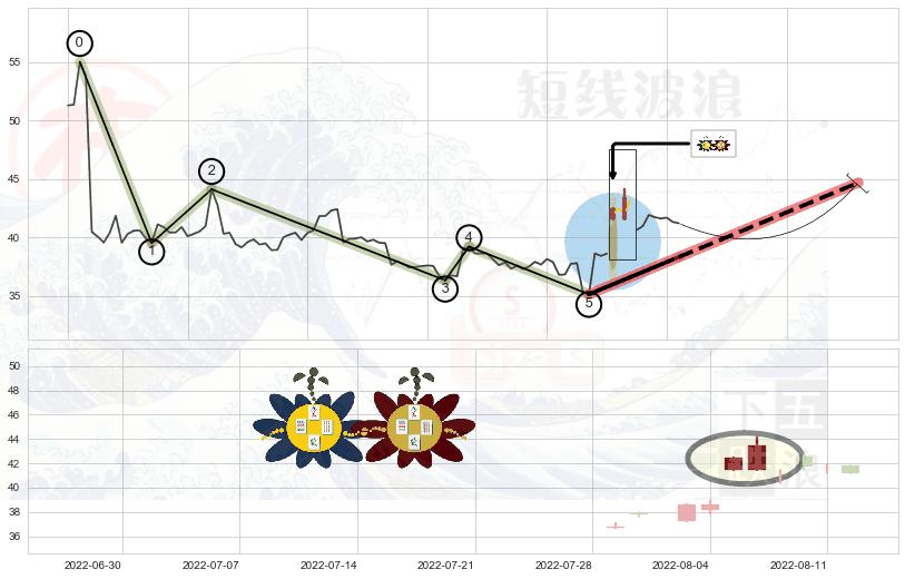 ♘ 阻力价格位42.09,可信任强度46.33%,距离最后交易2022-08-12 14:00形成的收盘价格41.20相差 +2.17%