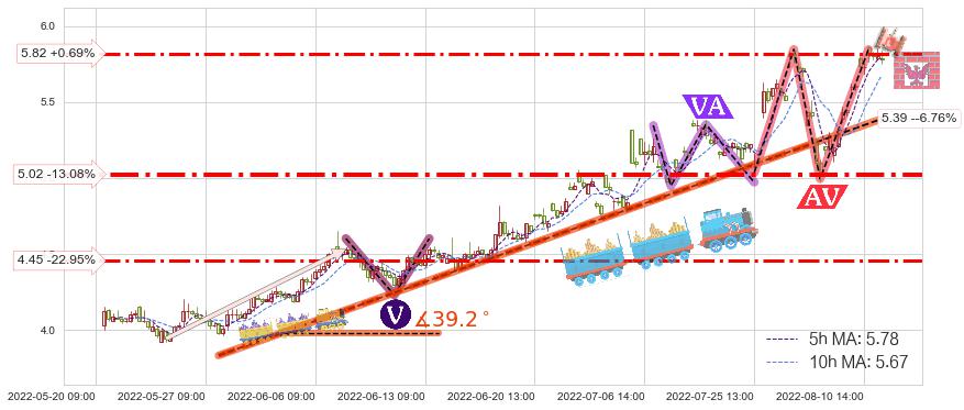 ♞ 5小时均线:5.78,10小时均线:5.67→ 快线>慢线