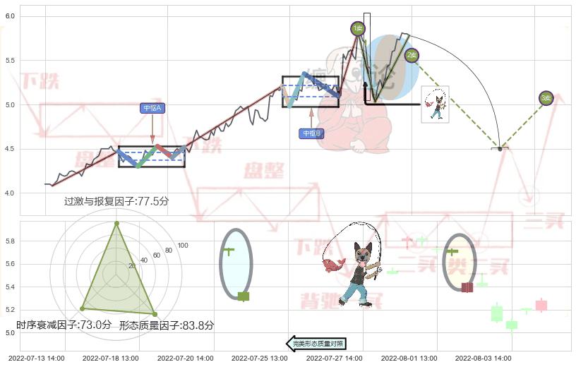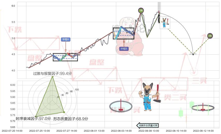 从2022-07-25 13:00至2022-08-12 14:00,共包含30个小时,阶段股价上涨13.81%,阶段股价变动位移路程比: 1 : 3