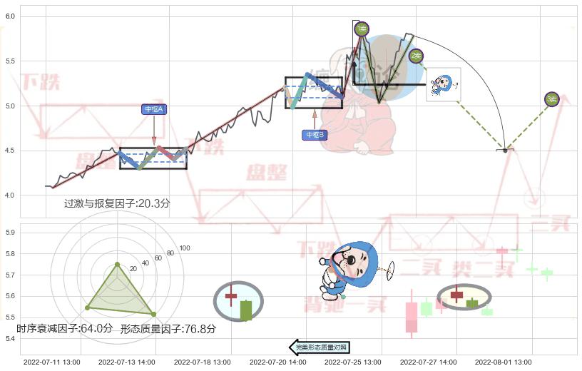 ➢ 🕰 价格走势在2022-07-27 14:00:00至2022-07-28 13:00:00期间形成下跌螺旋桨,残存影响值:-3.89