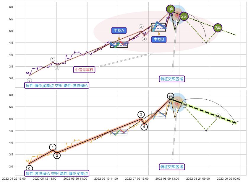 ➣ 缠论买卖点:猜想2卖持续蓄力下跌至3卖 → 下跌 → 风险信号 → 小趋势跟踪