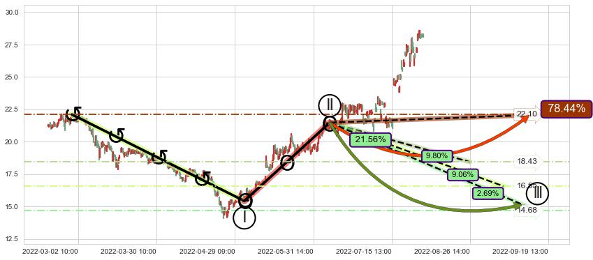 ♘ 支撑价格位21.42,可信任强度85.48%,距离最后交易2022-08-12 14:00形成的收盘价格28.11相差 -23.81%