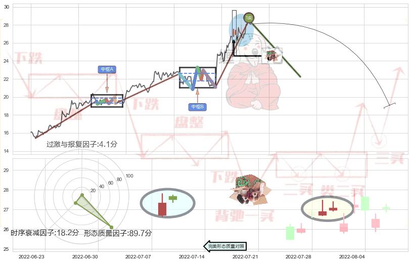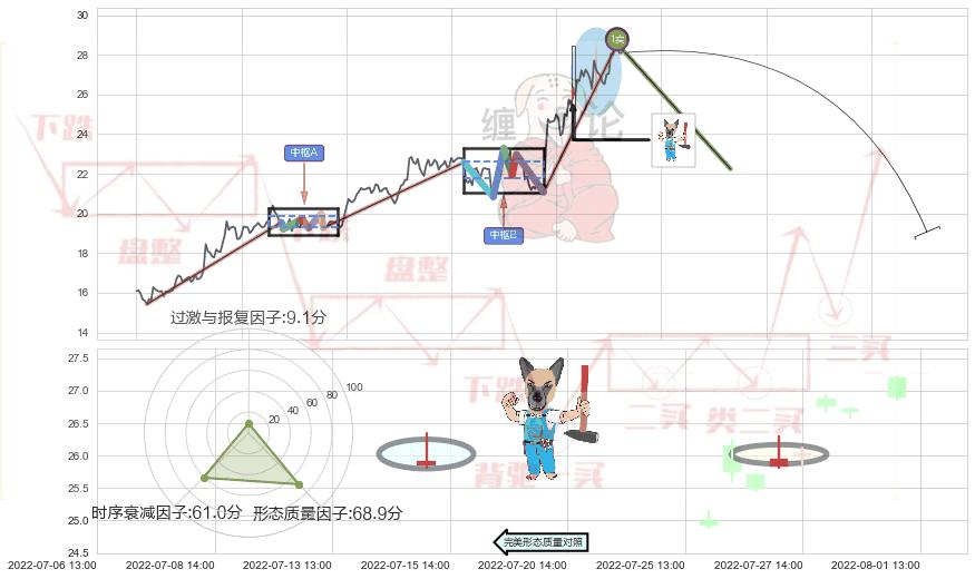 ➢ 🕰 价格走势在2022-07-29 00:00:00至2022-08-01 00:00:00期间形成顶部尽头线(下山虎),残存影响值:-2.10
