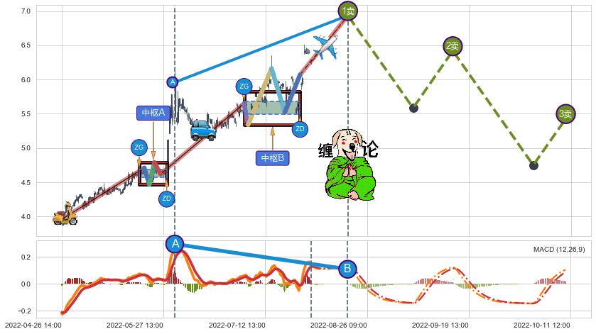➢ 缠论价格❶卖比A点高 ⤴,【MACD】指标B点比A点低 ⤵️