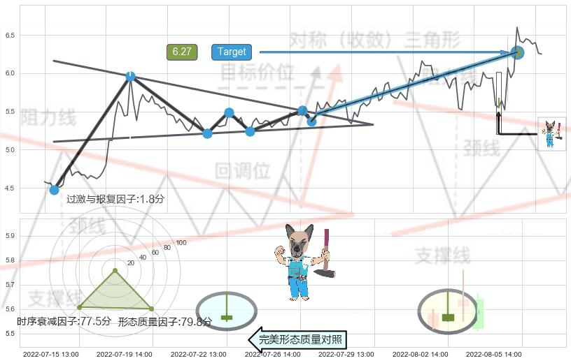 ➢ 【买1】: 激进型 买点 →(06-22:13: 5.47 )形成突破上升【对称】三角形整理【整理】形态