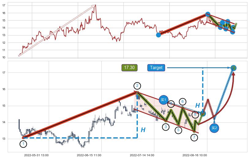 ➣ 最小中继整理涨幅→𝐇: 2.770 (𝐇旗杆的长度:旗杆起点→顶点)