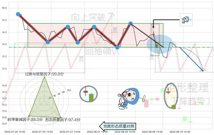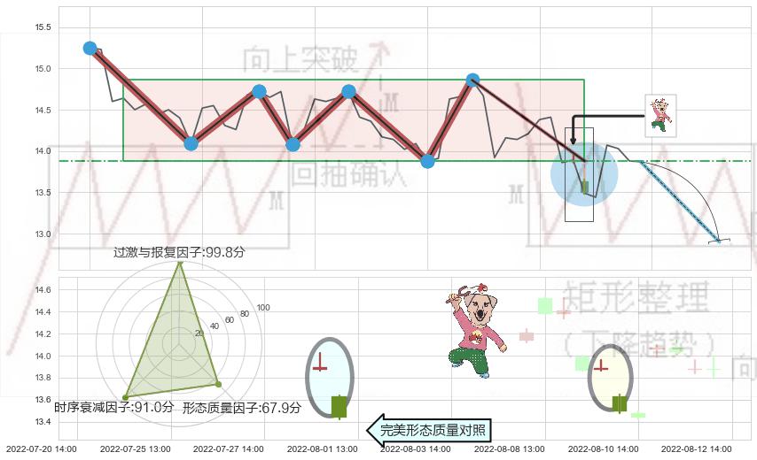 ➣ 【卖2】: 保守型 卖点→(08-12:13: 13.88 )形成下跌矩形整理突破后的【回抽确认】