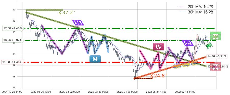 ♘ 阻力价格位17.30,可信任强度90.97%,距离最后交易2022-08-12 14:00形成的收盘价格16.10相差 +7.48%