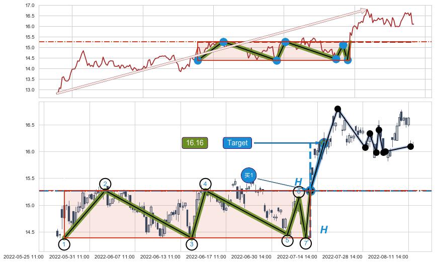 ➢ 【已达成】最小【整理】第一目标价格→(07-14:14: 15.95 ), 后续继续【整理】上涨动力微弱,上涨较小