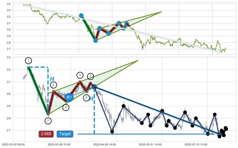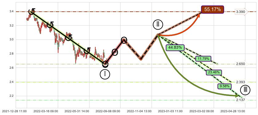 ➣ D点拟合预测价格3.096,距离最后交易收盘价格2.710相差 +14.23%