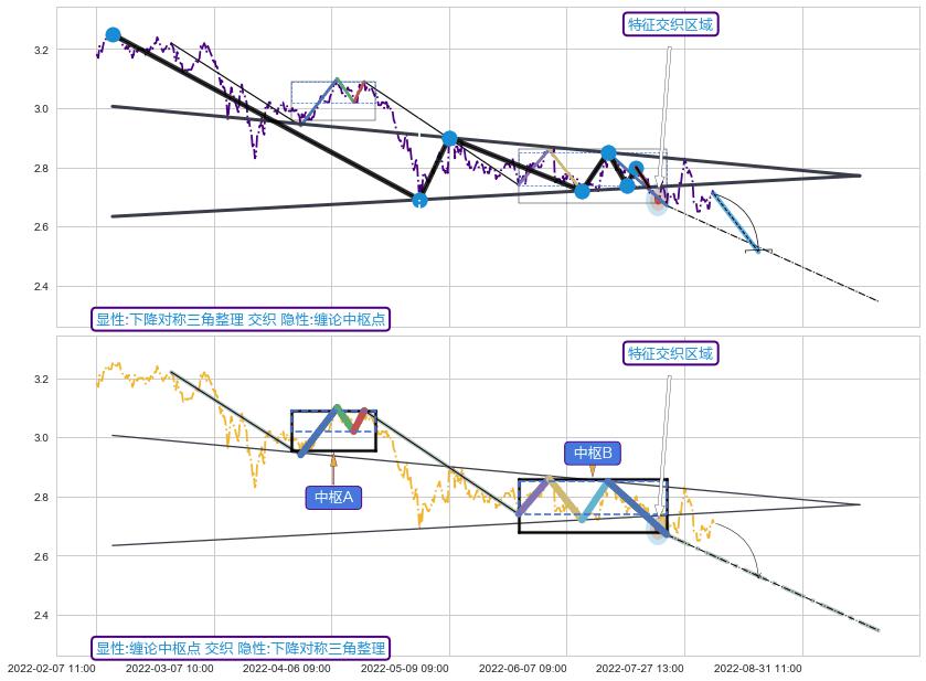 ➢ 下降对称三角整理与缠论中枢点信号事件周期长度级别相同,同周期信号事件