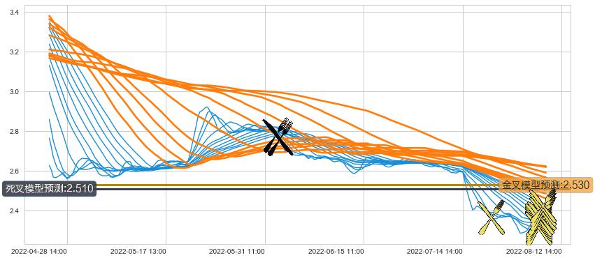 ➢ 60小时均线于(06-01 11:00: 2.777)形成【死叉】基于【死叉历史模型】预测死叉后最低波谷价格: 2.535, 死叉后最低价格2.270,已经下跌超出预测最低波谷价格, 预期反弹