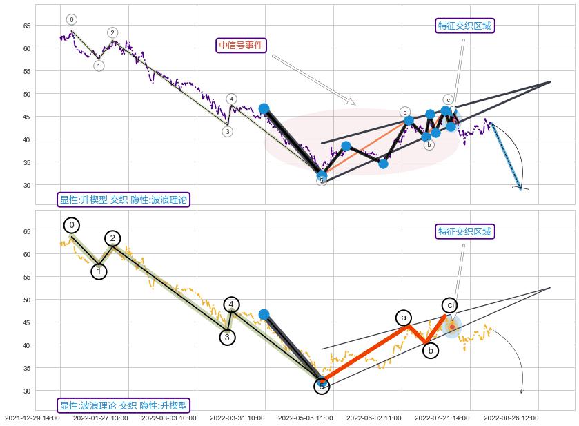 ➣ 波浪理论:猜想击穿破位c点后继续下跌 → 下跌 → 风险信号 → 小趋势跟踪