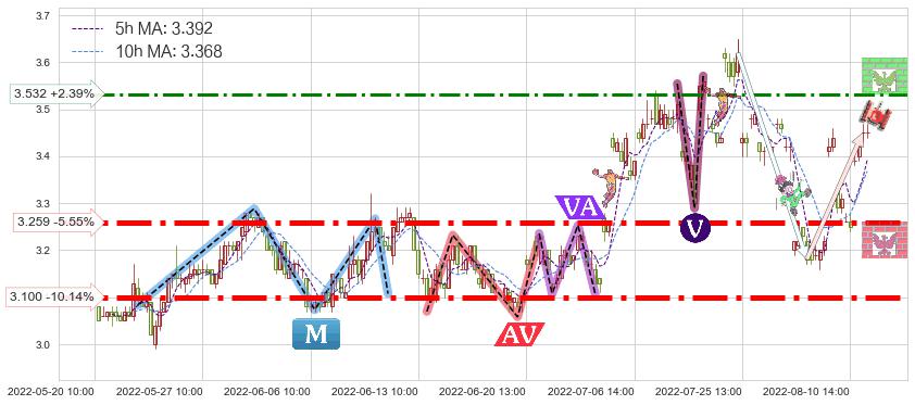 ♘ 阻力价格位3.532,可信任强度57.55%,距离最后交易2022-08-12 14:00形成的收盘价格3.450相差 +2.39%