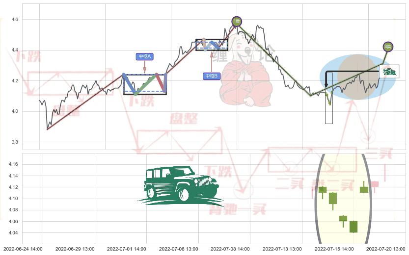 ➢ 收盘价(07-07:13: 4.12 )→回踩→第二根k线高点(07-06:13: 4.11 )