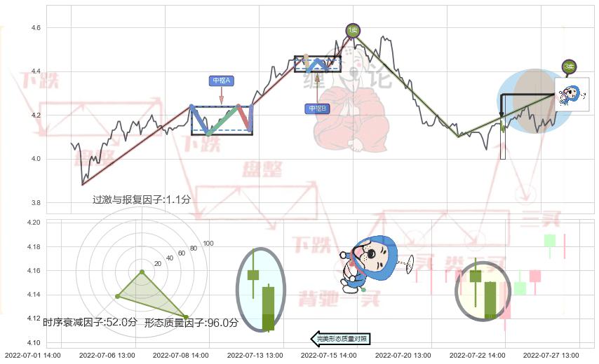 ➢ 🕰 价格走势在2022-07-21 14:00:00至2022-07-22 13:00:00期间形成下跌螺旋桨,残存影响值:-3.01