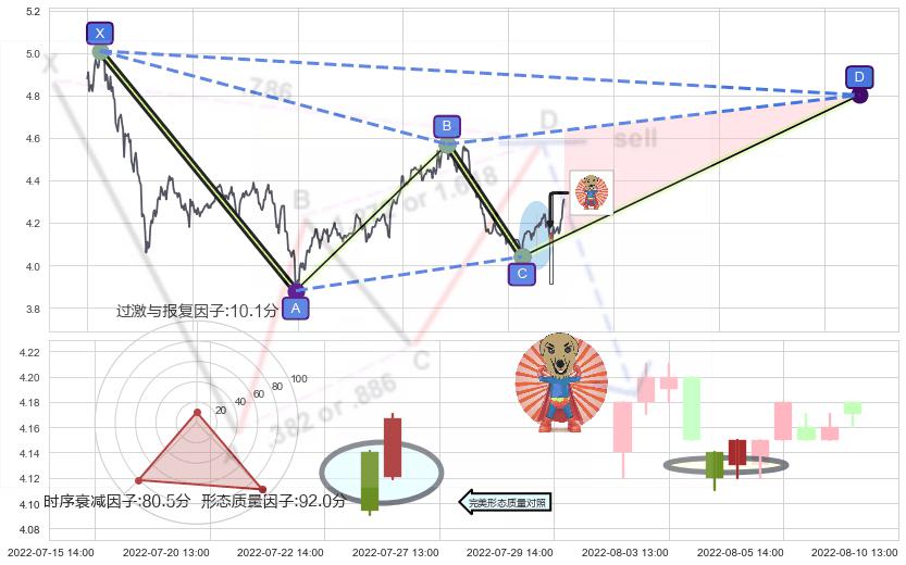 ♘ 阻力价格位4.50,可信任强度74.62%,距离最后交易2022-08-12 14:00形成的收盘价格4.31相差 +4.37%