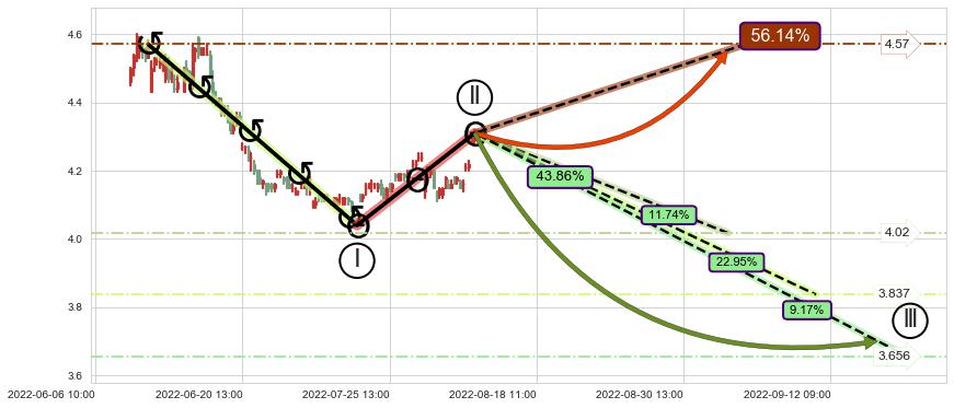 ♘ 阻力价格位4.44,可信任强度83.23%,距离最后交易2022-08-12 14:00形成的收盘价格4.31相差 +3.00%