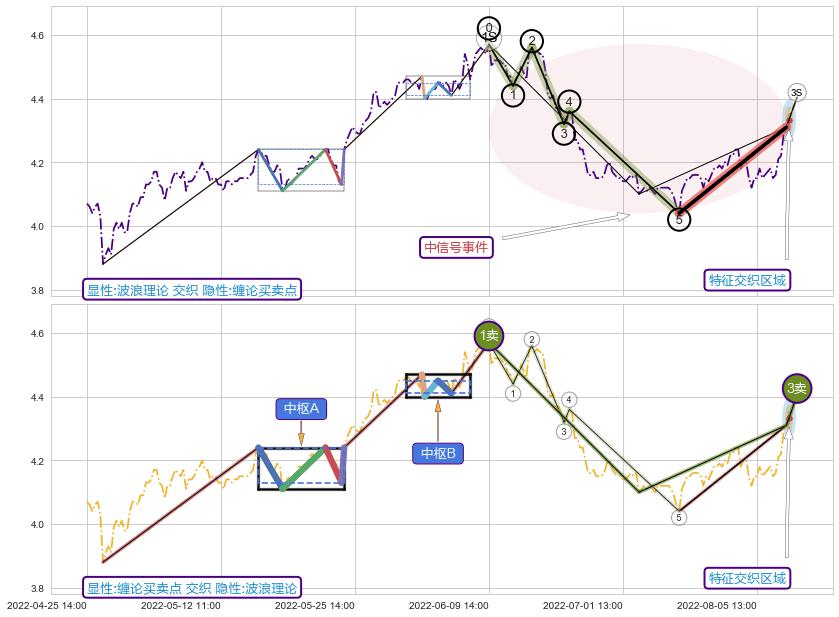 从2022-07-22 13:00至2022-08-12 14:00,共包含32个小时,阶段股价上涨4.57%,阶段股价变动位移路程比: 1 : 3