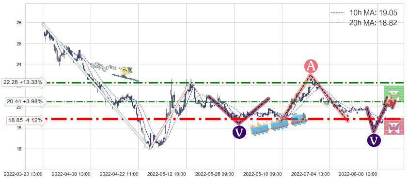♘ 阻力价格位20.44,可信任强度40.15%,距离最后交易2022-08-12 14:00形成的收盘价格19.66相差 +3.98%