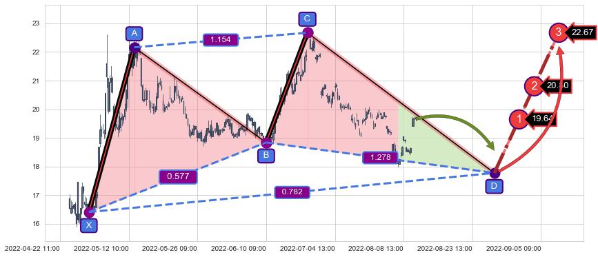 ♘ 阻力价格位22.28,可信任强度67.54%,距离最后交易2022-08-12 14:00形成的收盘价格19.66相差 +13.33%
