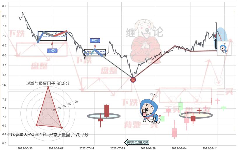从2022-04-07 09:00至2022-08-12 14:00,共包含321个小时,阶段股价上涨7.33%,阶段股价变动位移路程比: 1 : 36