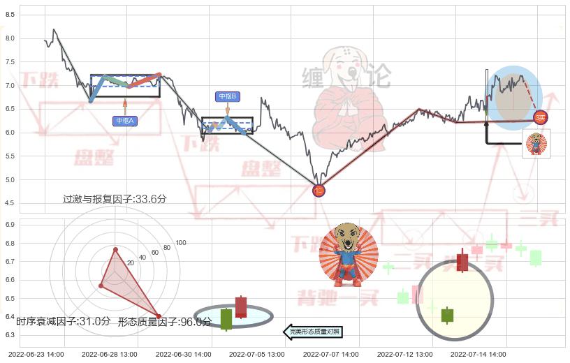 ➢ 【中枢A】:02-07:09-03-01:13,中枢由4笔构成,共85交易小时, ZG=7.19, ZD=6.97