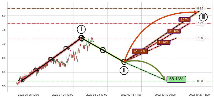 ➢ 循环浪继续向上【最低】位置(10-10:10, 7.20),匹配聚类样本比例28.41%, 可能性概率11.90%